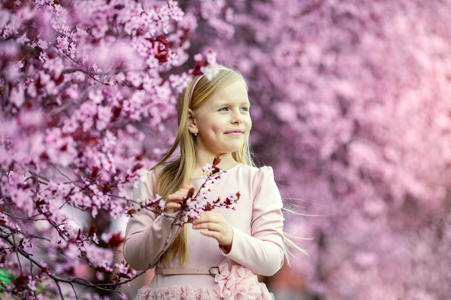 Focení v rozkvetlých slivoních (mosteckých sakurách) u kostela